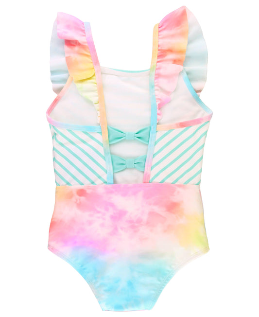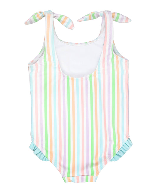 Girls Pastel Rainbow Stripe Tie Shoulder One-Piece Swimsuit