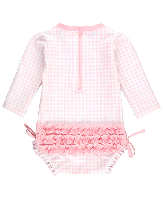 Baby Girls Pink Gingham Long Sleeve One Piece Rash Guard Swimsuit