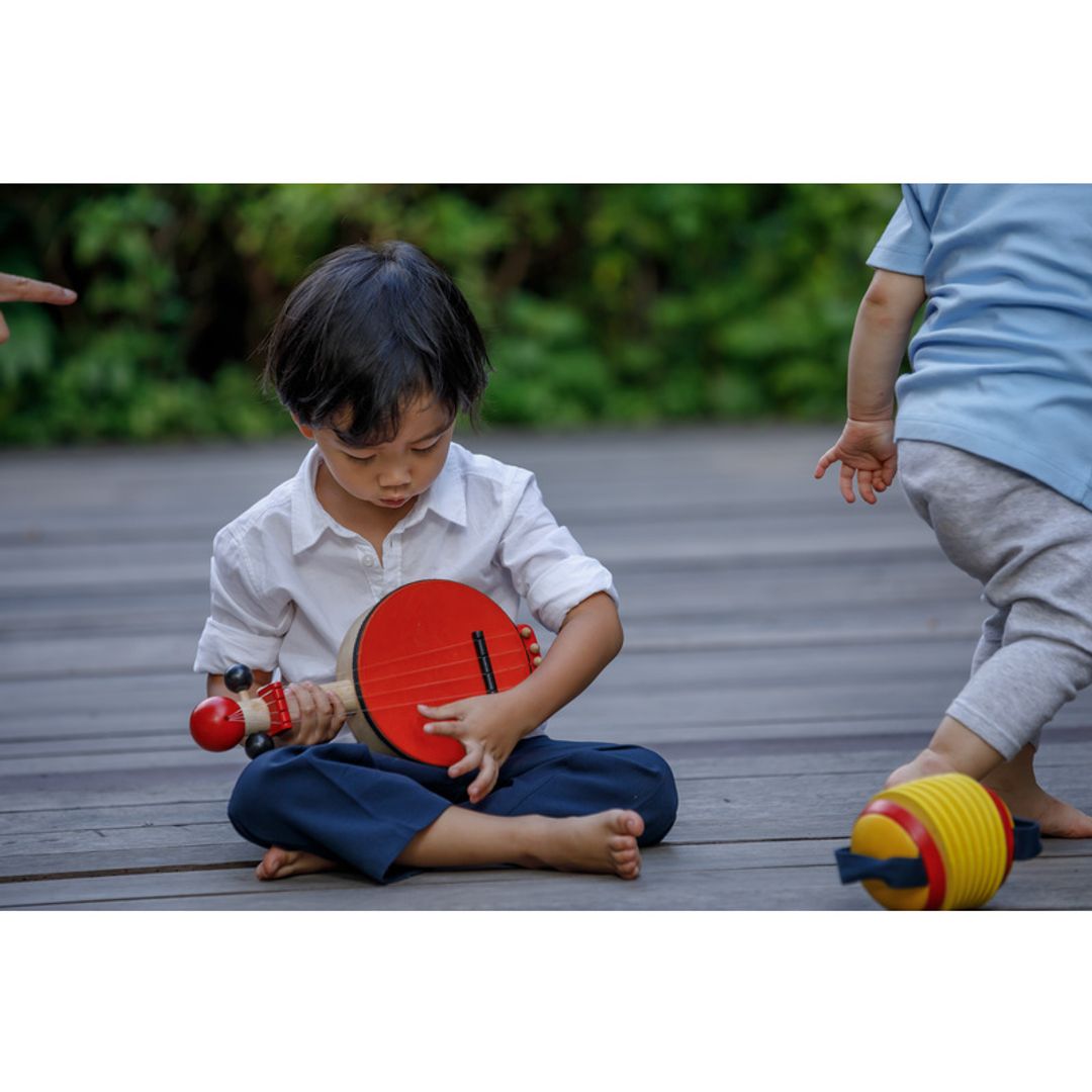 Inspire your child’s musical creativity and explore various sounds with the strum of this simple banjo. Strings are replaceable.