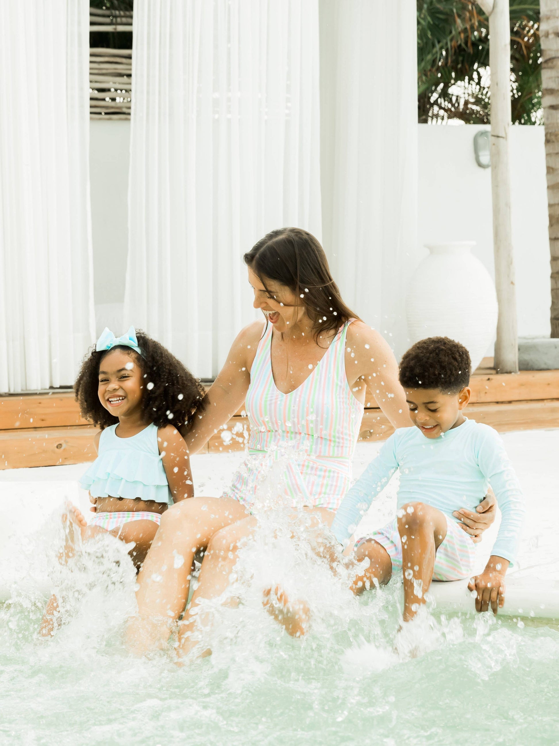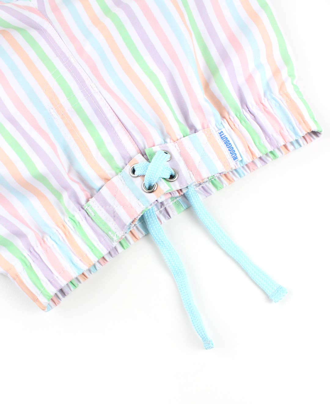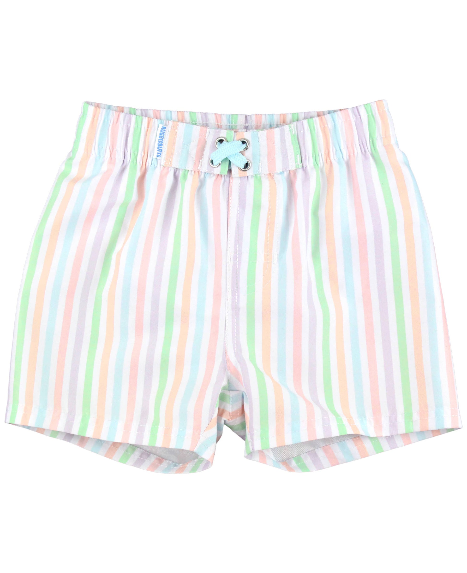 Complete your boy's summer swim outfit with these pastel striped Swim Trunks. With its inner mesh lining, not only will he look good but feel good, too.