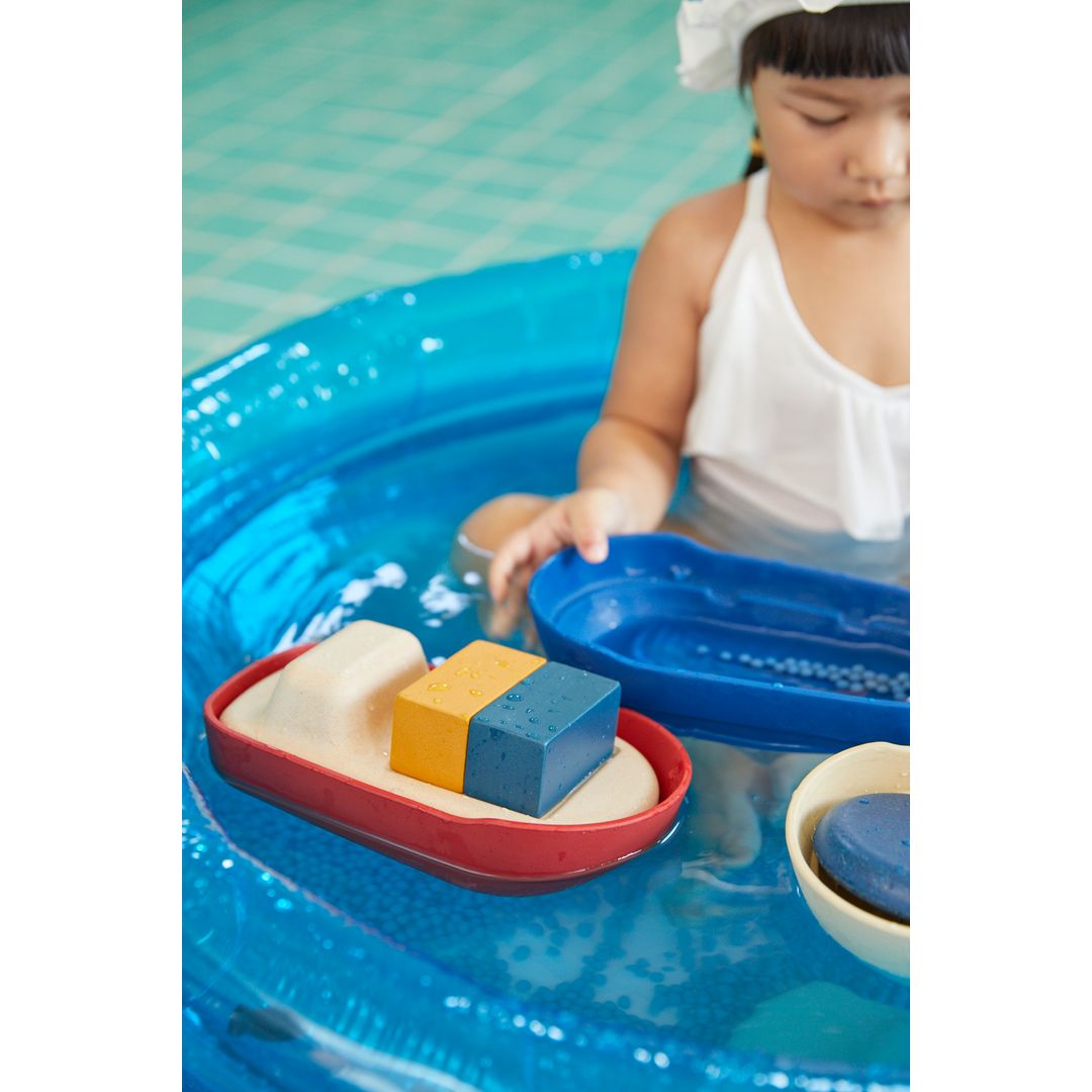Safely carry your imaginary cargo, goods, and materials from one port to another with the Rubber Cargo Ship! A hull made from natural rubber and cabin crafted from PlanWood make this floatable boat one of the most unique water vehicles out there. Use the wooden blocks to add dynamic to your play scenarios! The PlanToys Cargo Ship helps develop fine motor skills, hand-eye coordination and creative thinking. It can be enjoyed in the bathtub or any natural water source!