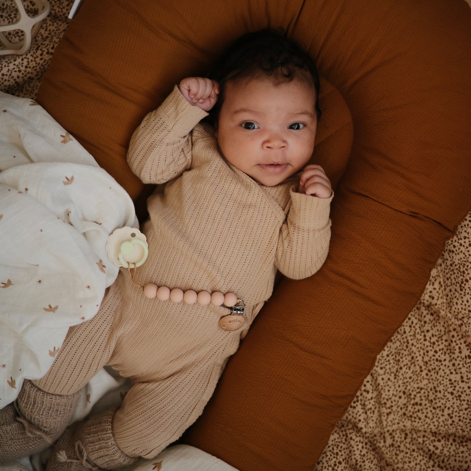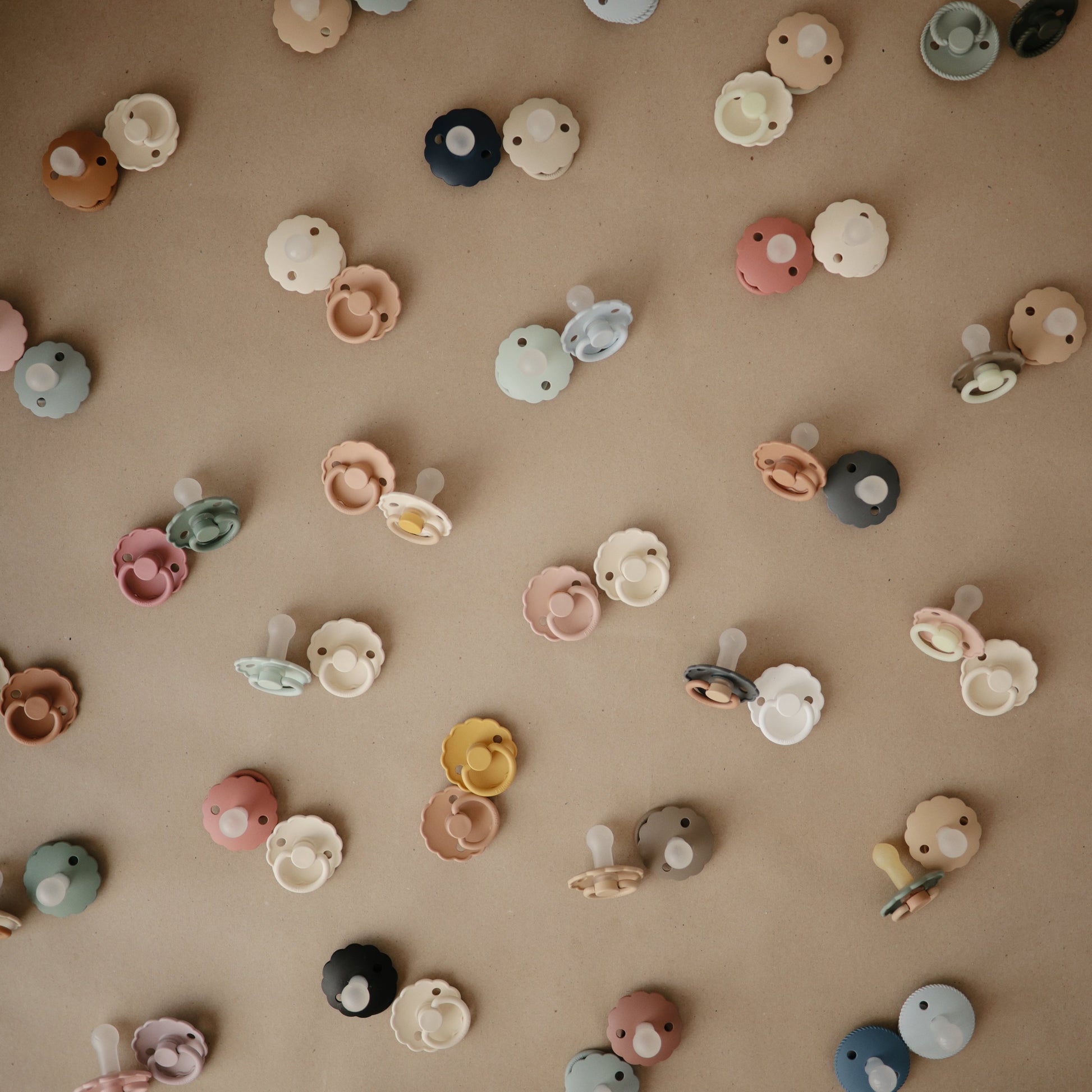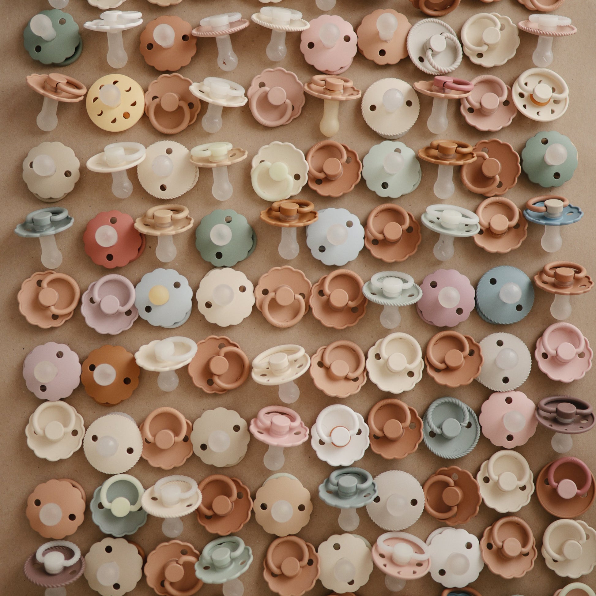 What's Included: 1 set of 2x FRIGG Daisy Night silicone pacifier.