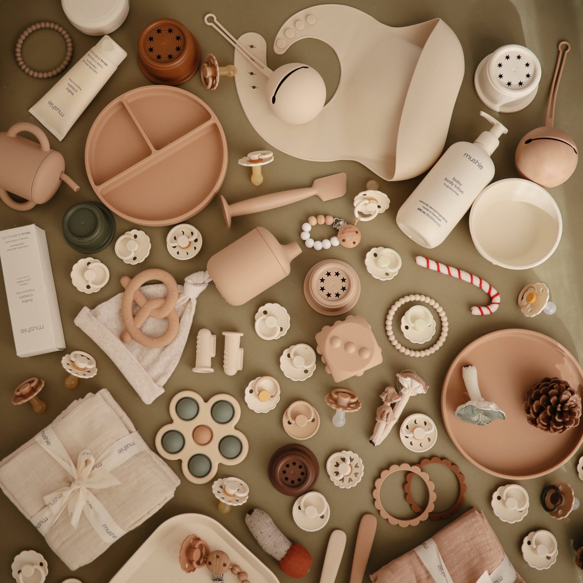 We carry other essentials including feeding products and natural pacifiers. Our bowls, plates, and utensils are designed with a pleasing aesthetic and maximum functionality for toddlers and children. Our selection of bibs will help to keep your child neat during mealtime, arts and crafts, and sensory play.
