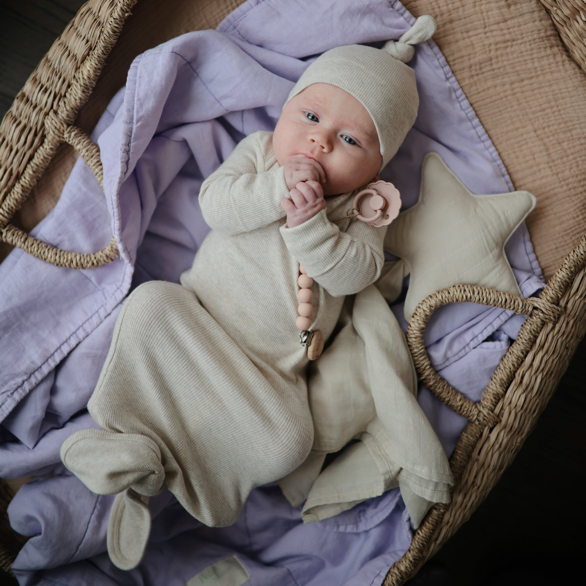 The FRIGG line of daisy silicone pacifiers with improved SilkySoft™ nipple and an innovative Click-lock System has been thoughtfully designed for your baby's comfort. The outward curve keeps the pacifier off their delicate skin, while features like air holes and a security handle ensure your baby stays safe. Available in a range of soft colors, FRIGG pacifiers make a beautiful addition to your collection of baby essentials.