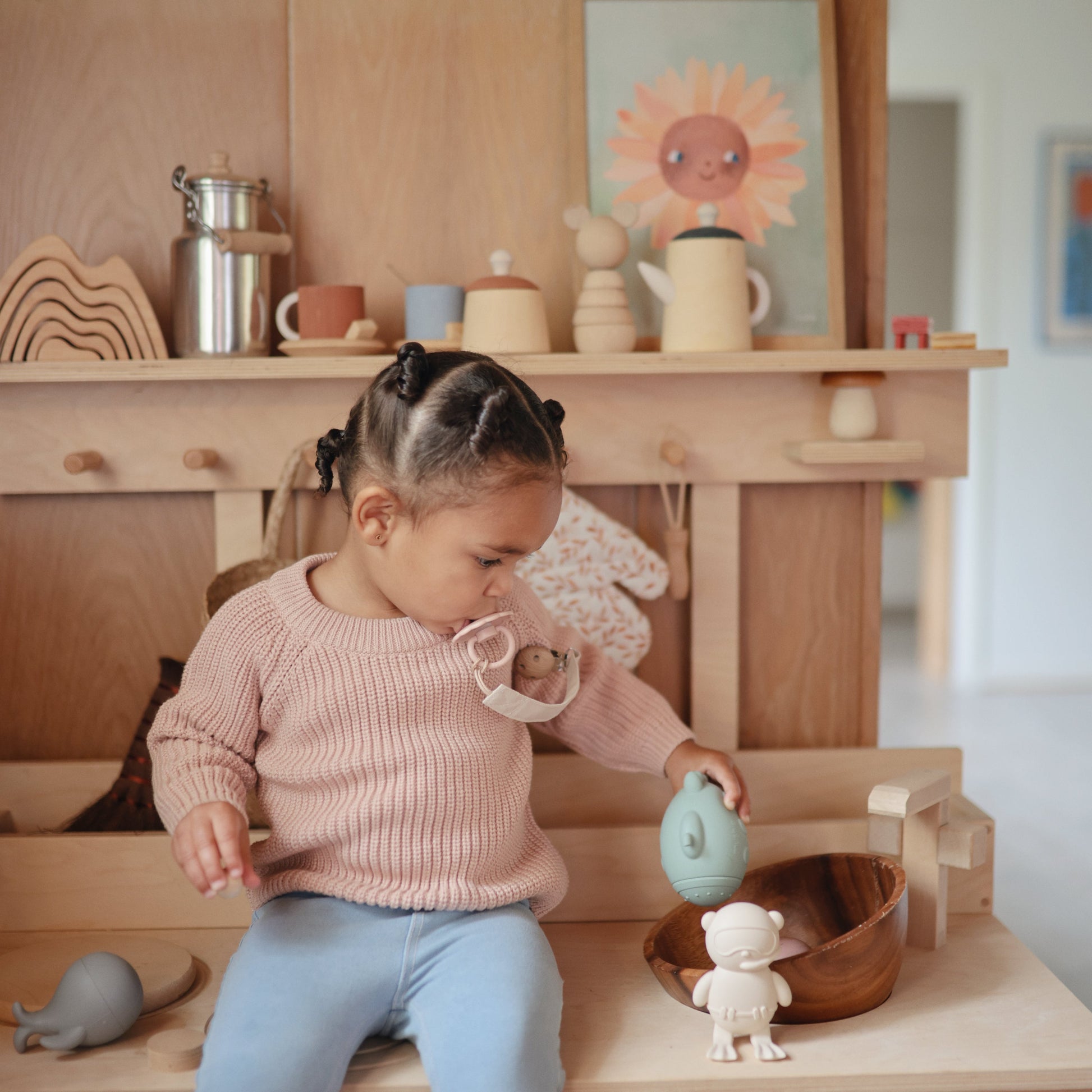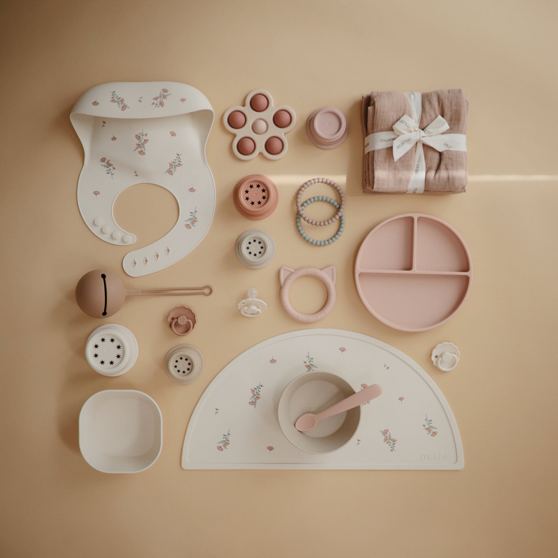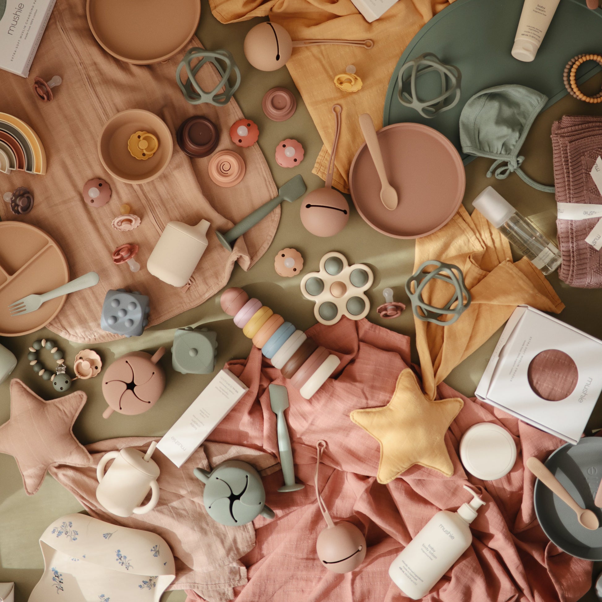 We carry other essentials including feeding products and natural pacifiers. Our bowls, plates, and utensils are designed with a pleasing aesthetic and maximum functionality for toddlers and children. Our selection of bibs will help to keep your child neat during mealtime, arts and crafts, and sensory play.