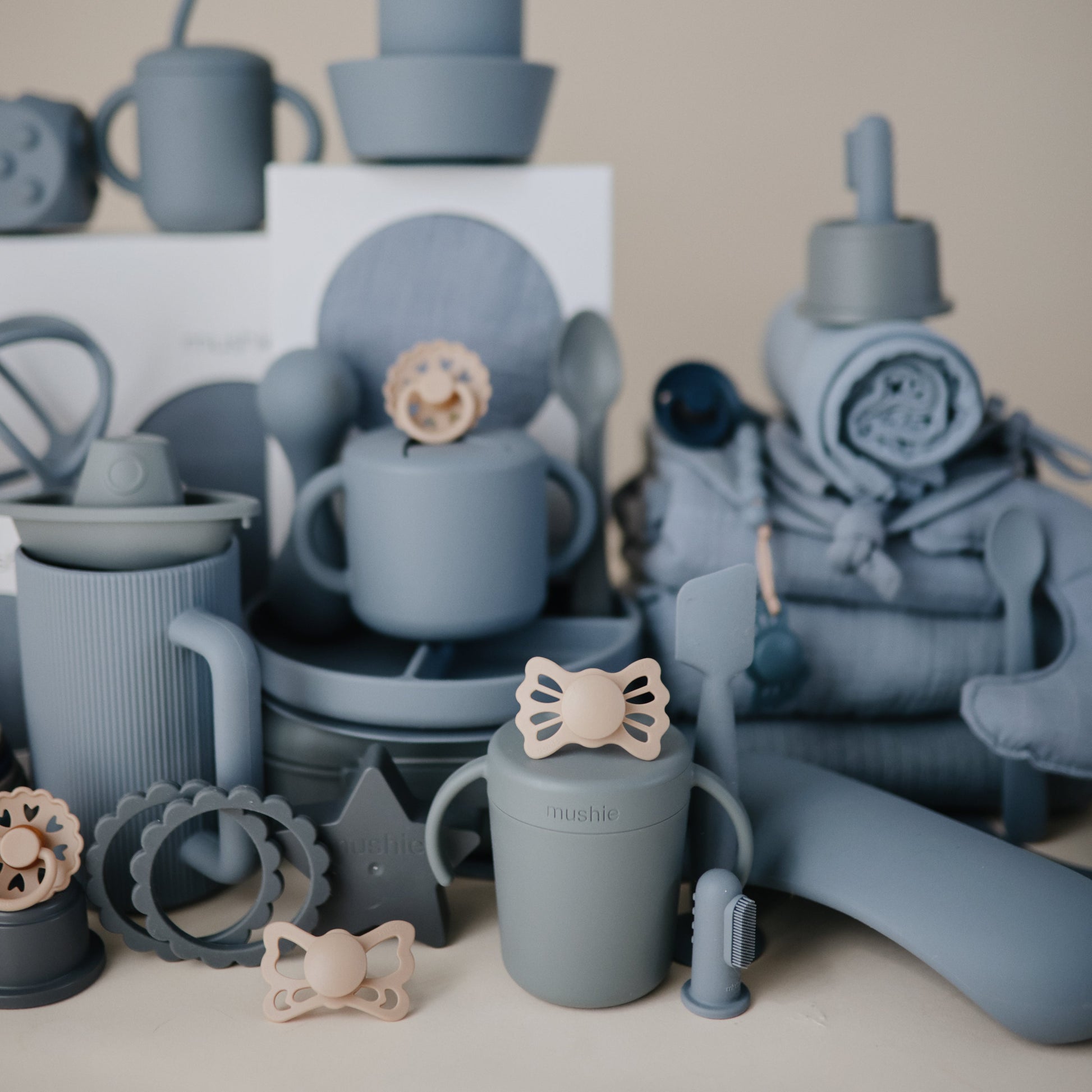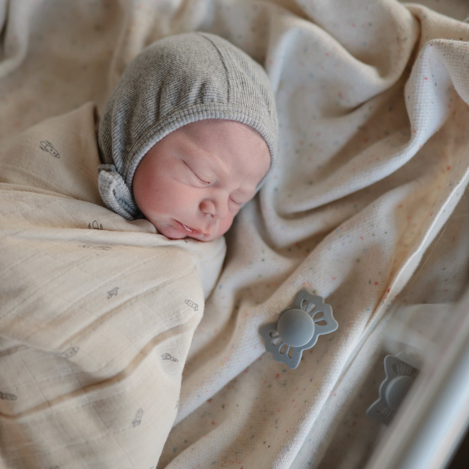 FRIGG Lucky is symmetrical with a slightly flattened teardrop-shaped nipple. The symmetrical design always fits correctly in baby’s mouth, regardless if it is facing up or down. FRIGG Lucky pacifiers have a flatter neck to minimize pressure on the palate and gums, which reduces the risk of crooked teeth and supports proper development of baby’s mouth and jaw.