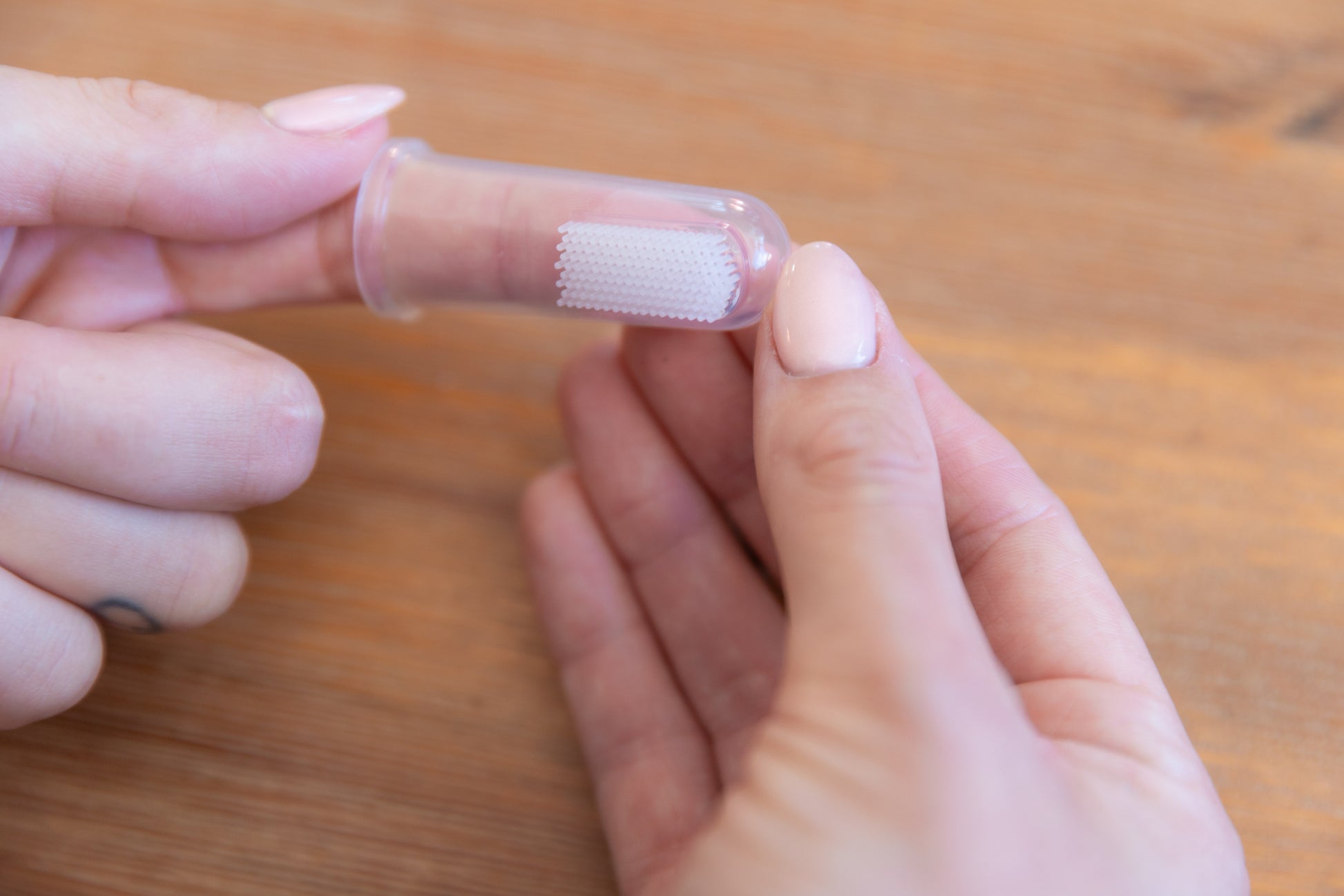 - Ridges on the back of each finger toothbrush help to massage your baby's gums and gently clean their tongue.