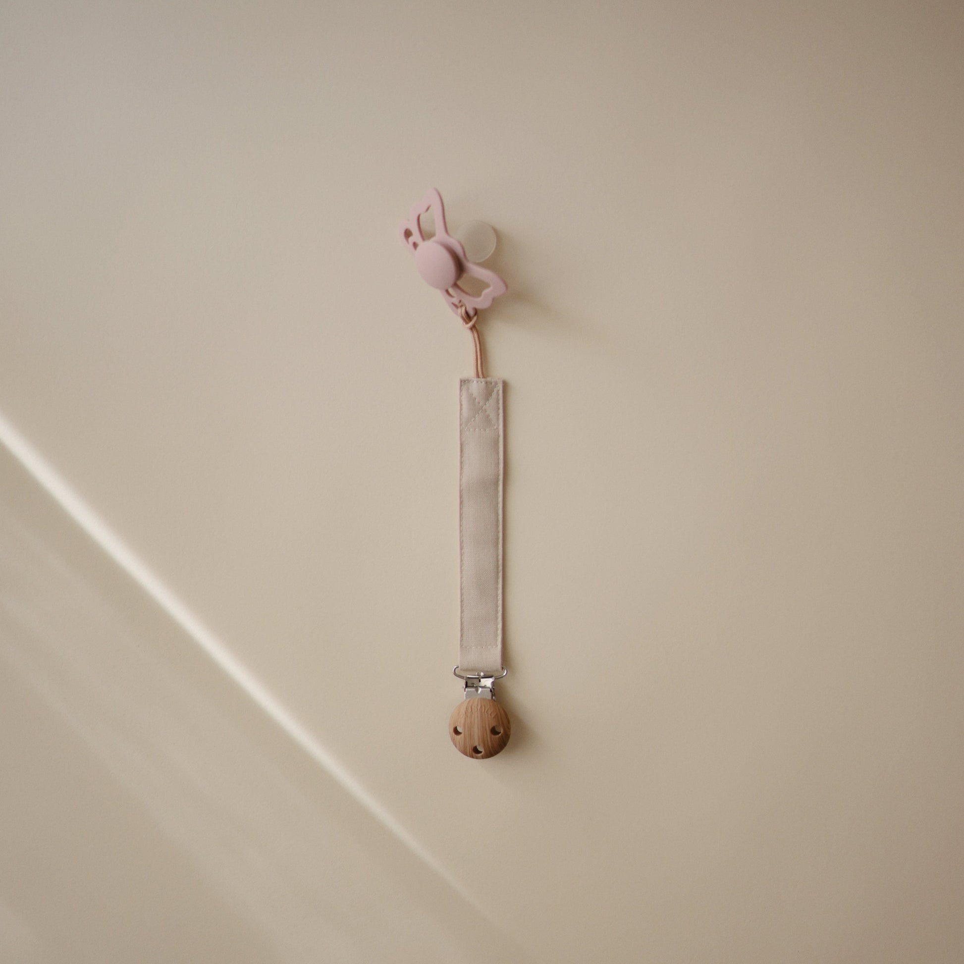 Keep soothing favorites near little hands with our two-pack linen pacifier clip. With an interior water resistant coating, this material can easily withstand daily use and messy moments. Its fabric is soft to the touch while the faux wood silicone clasp holds secure to keep pacifiers in reach and off the floor. The loop design is compatible with most pacifiers as the clip offers durability and long-lasting features to families on-the-go.