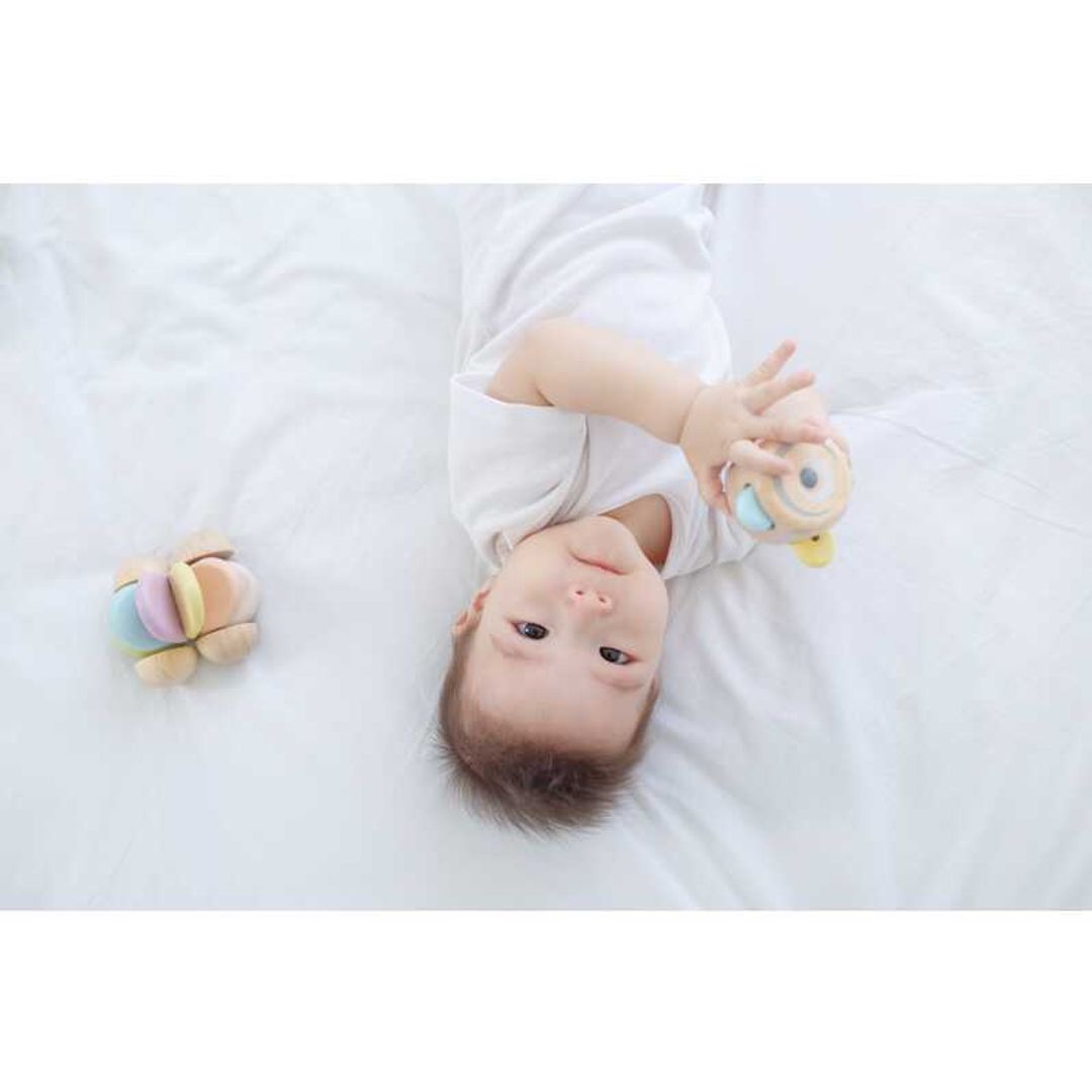 - Graspable and sparks curiosity as baby watches the arms move in and out as the roller rolls on a flat surface