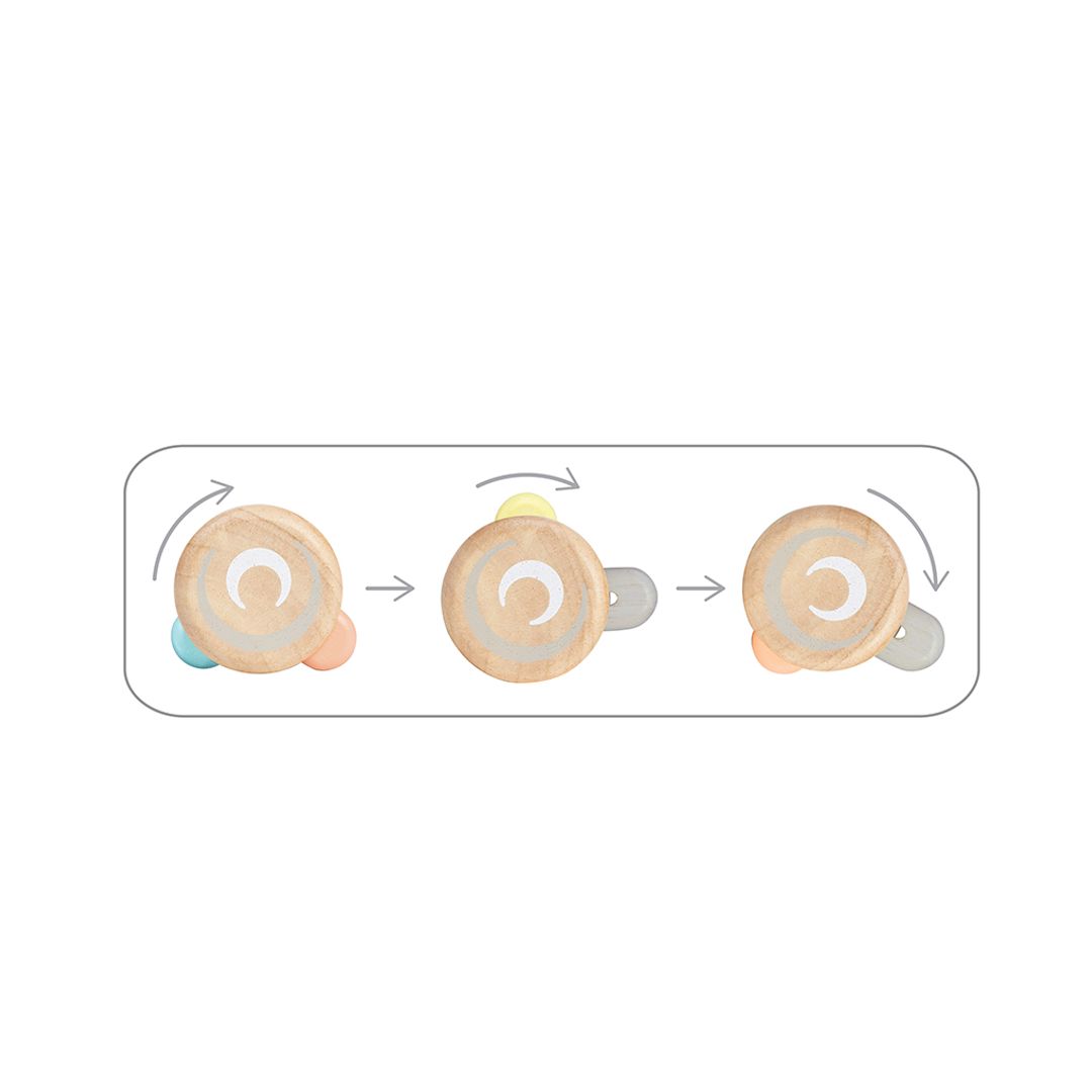 - Develops fine motor skills through play as they grasp and pinch the arms as they slide from one side to another.