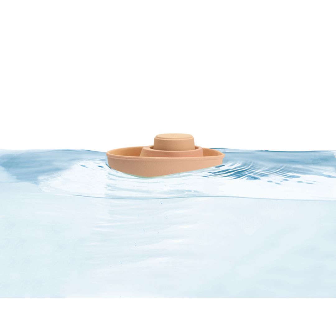 It's a rubber boat that explores both the surface and the underwater depths! By Simply pressing the center of the hull and turning it over, the boat becomes a submarine. This makes for an extra unique play experience during bath time and water play. Challenge your child's creative thinking skills and stimulate their imagination while inviting them to explore their fine motor development with this water toy.