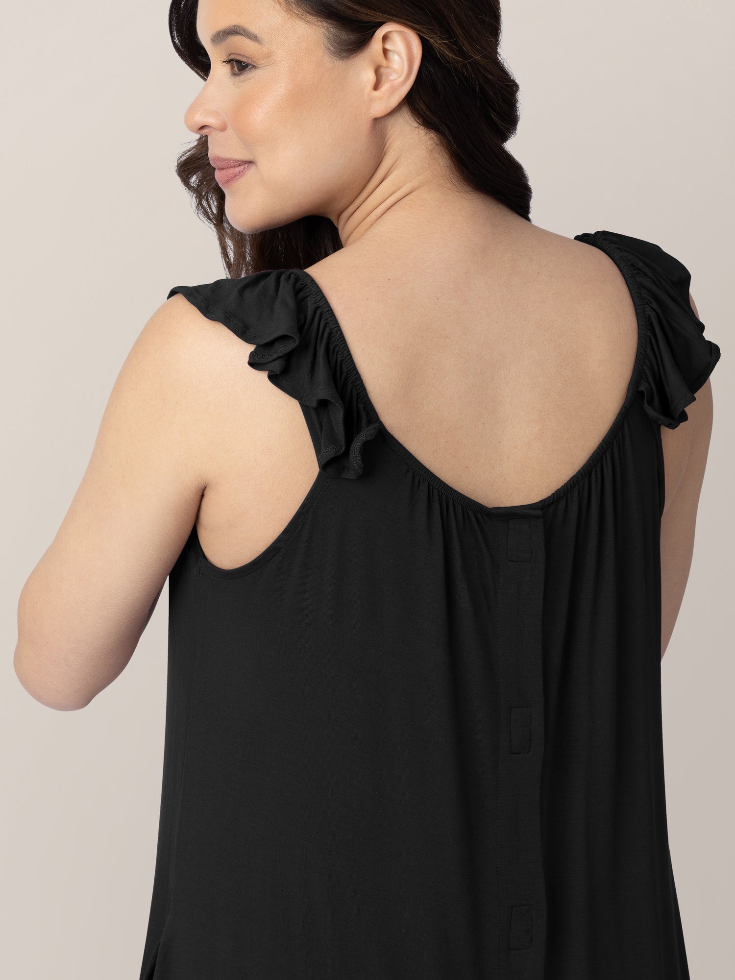 Ruffle Strap Labor & Delivery Gown | Black
