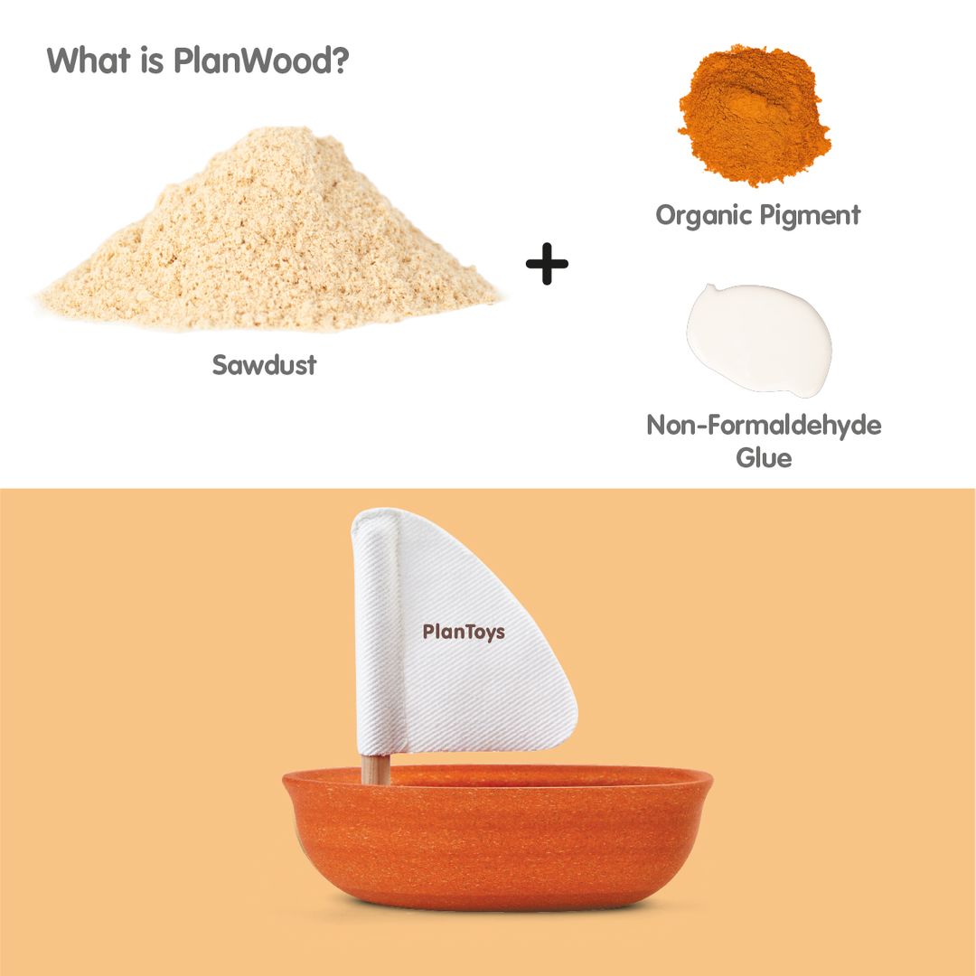 - Designed using PlanWood, a unique PlanToys material that utilizes surplus sawdust and wood scraps to create a sustainable, flexible wooden material