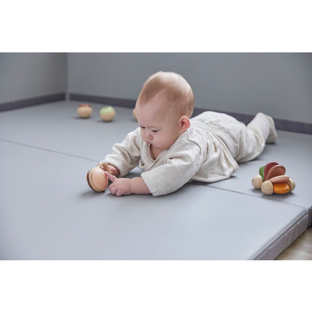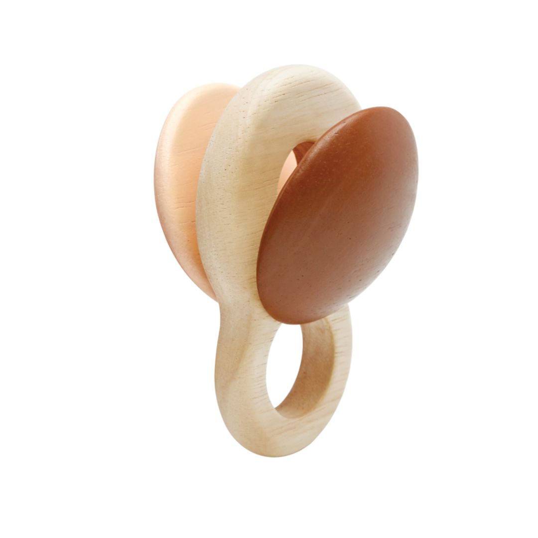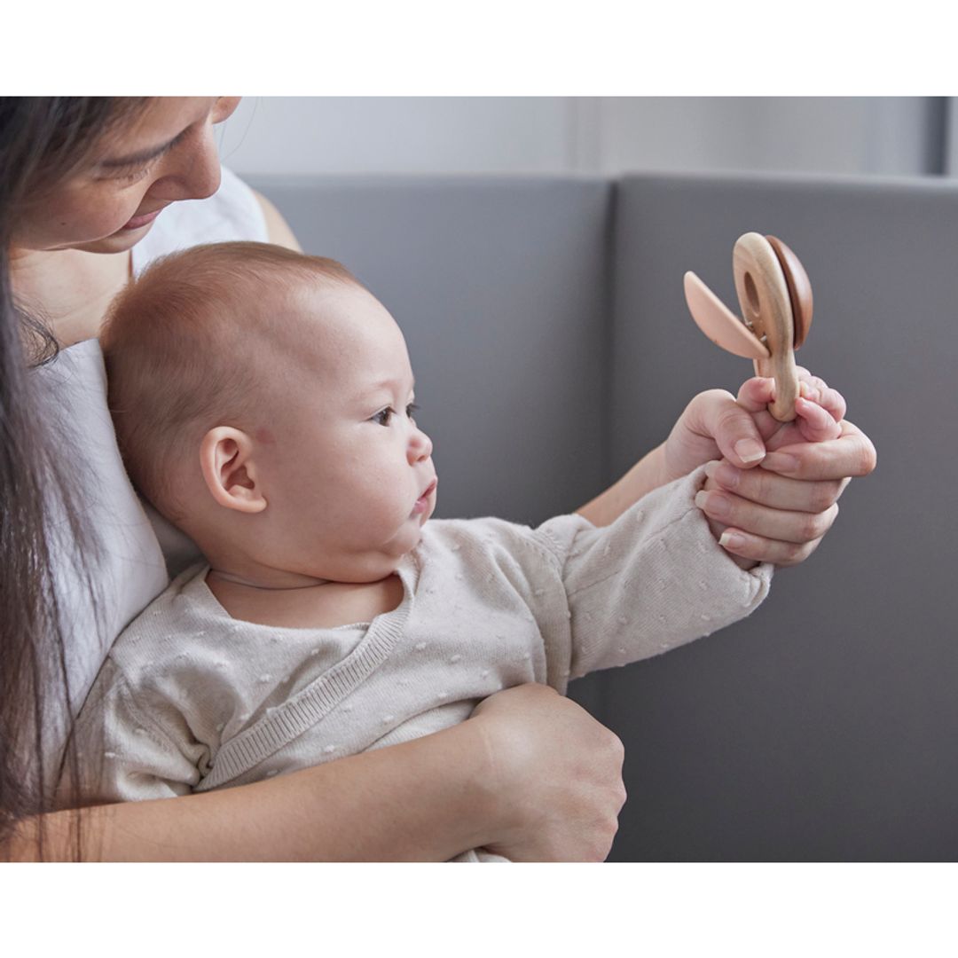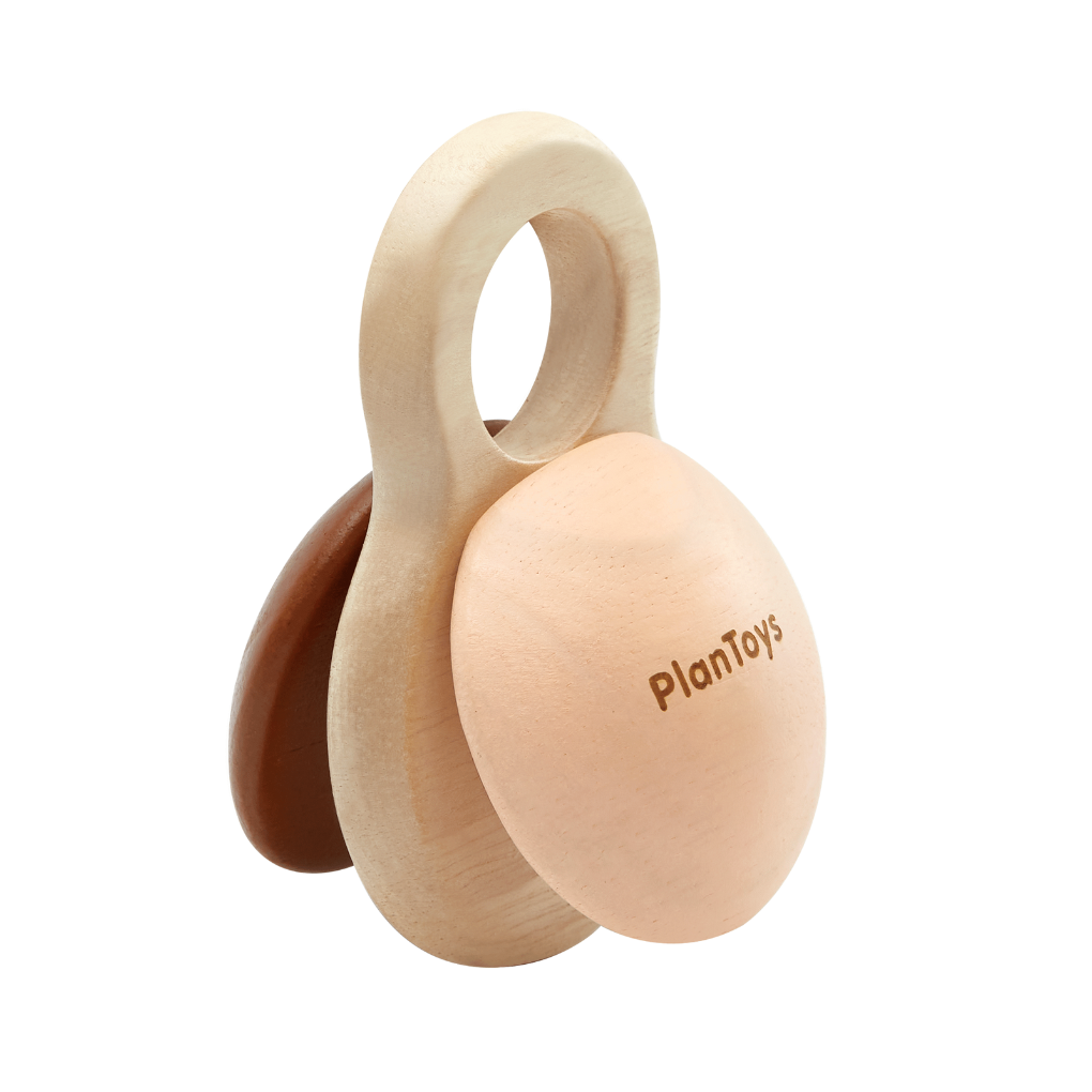 The PlanToys Shake N Clap Rattle will keep your little one engaged and learning as they shake the rattle to play music. The design is simple but it is packed with developmental play. The rattle will engage their vision, hearing and tactile sense through play. Great for parent guided play in early months to help develop eye tracking as they will follow the rustic colors and sounds as it is gently shaken. The smooth surfaces, contours and grasping ring are a delight for baby to hold. Connect it to your carrier, stroller or shirt with your favorite clip for on the go play. Made with organic pigments and water based dyes for your peace of mind.