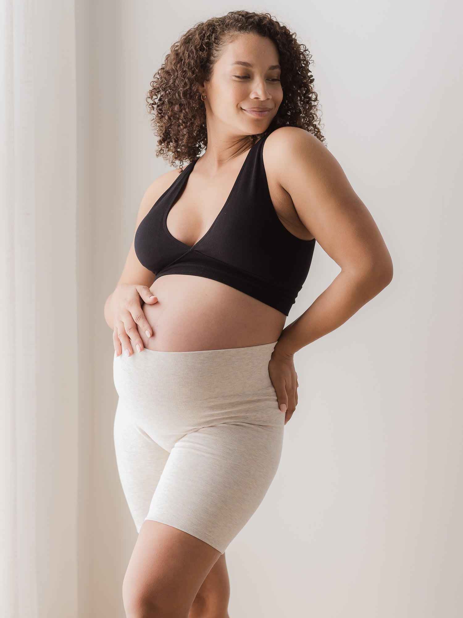 The search for the perfect bike shorts is over. Made from our beloved bamboo fabric, they pair great with all your favorite bras, baggy pullovers, button-downs, and everything in between. These postpartum & maternity bike shorts are double-layered for full coverage but still super breathable. We love them for lounging or running errands, and their incredible stretch works with your changing body.