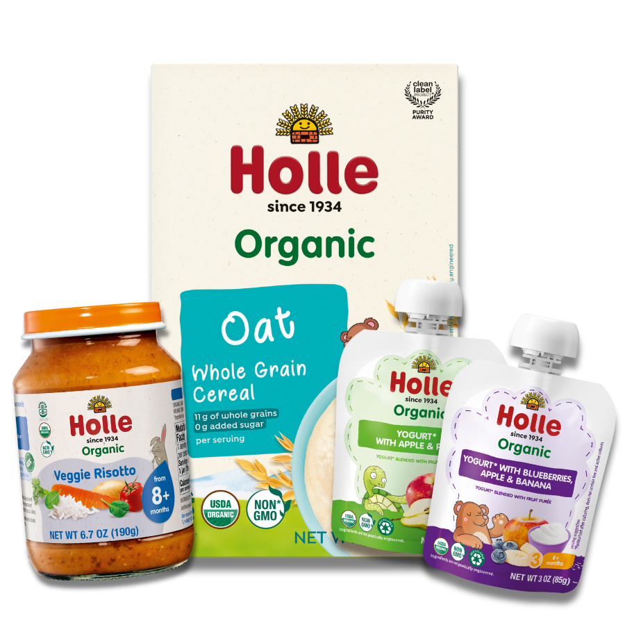 Featuring three of our most loved products – Holle Organic Veggie Risotto Jar, Holle Organic Whole Grain Oat Cereal, and Holle Organic Yogurt Pouches – this bundle is your go-to for building organic, nutrient-rich, easy-to-prepare toddler meals and snacks.