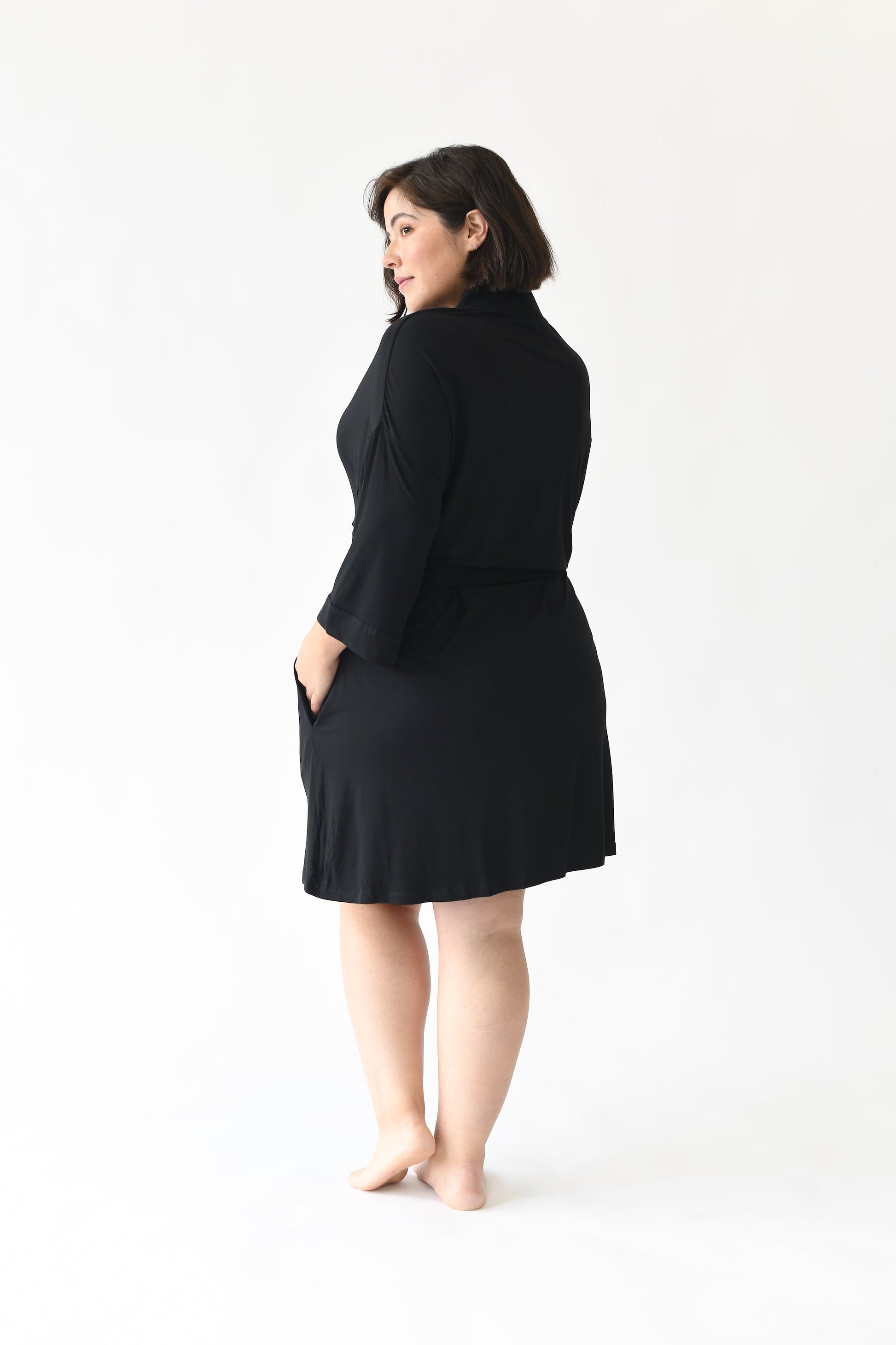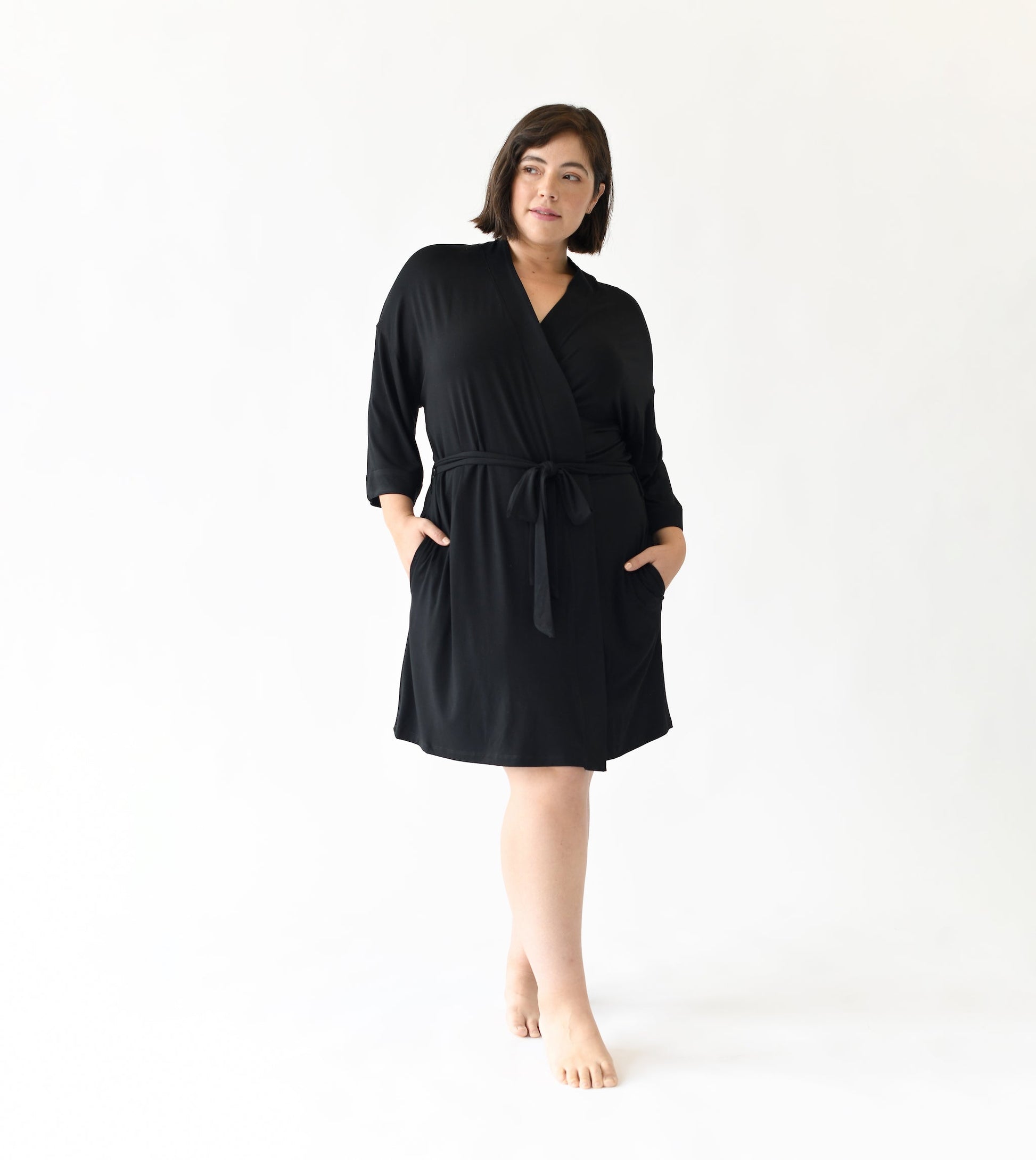 Unwinding feels extra special in our Women's Bamboo Stretch-Knit Kimono Robe. This cozy cover-up is woven from a breathable stretch-knit bamboo viscose which means you’ll never get hot. It also means the robe has a super soft, stretchy feel that gives this classic robe silhouette a drape that adds a luxuriously elegant look. The outside features pockets and an attached belt while an interior tie allows you to customize your level of coverage.