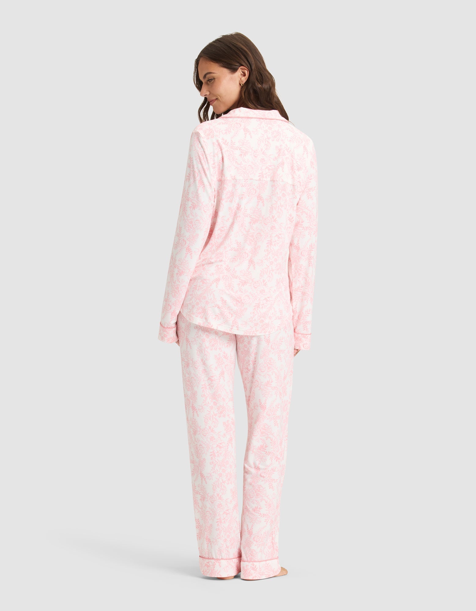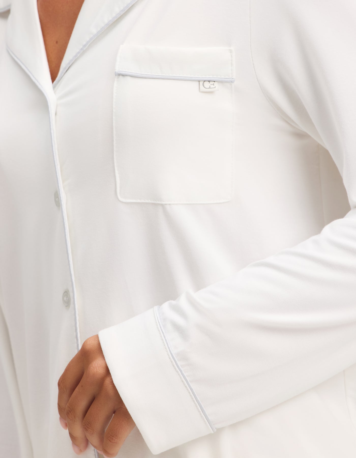 Bedtime can’t come soon enough when you’re waiting to slip into our Stretch-Knit Long Sleeve Bamboo Pajama Set. Crafted with a soft stretch-knit that features enhanced breathability and a luxurious drape, this lightweight set sleeps degrees cooler than cotton to keep your temperature just right through the night. With elegant contrast piping throughout, the set includes a pocketed button-up and pants with an elastic waistband.